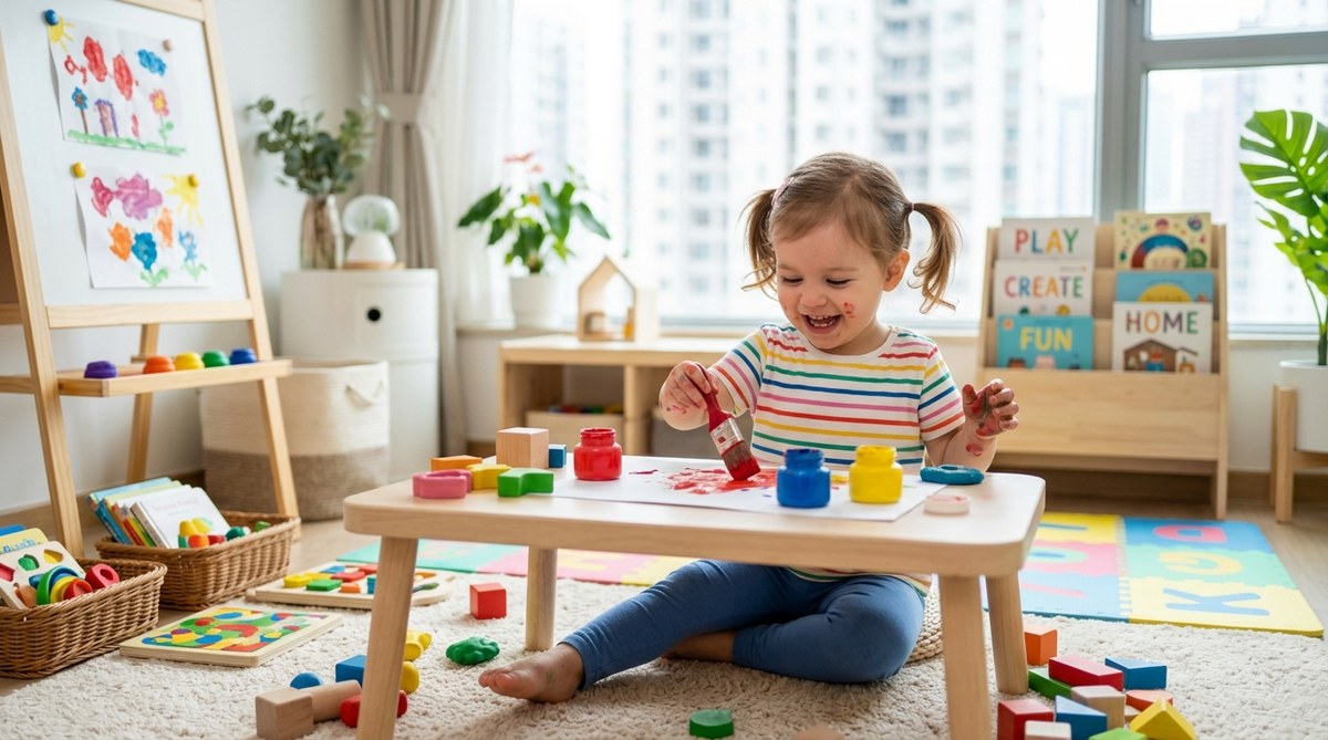 A well rounded indoor routine balances active play with quieter moments. Layout and space planning matter, especially when your living area doubles as the play zone. A simple setup can make a big difference. Consider a dedicated play space with easy accessibility for toys, a small shelf for storing materials, and a soft mat or rug to cushion falls during movement activities. If you are unsure where to begin, check out How to Set Up a Fun and Safe Playroom at Home for practical space planning tips and safety considerations. And if you want to keep things fresh, you can rotate activities weekly so your toddler sees new options without overwhelming them.